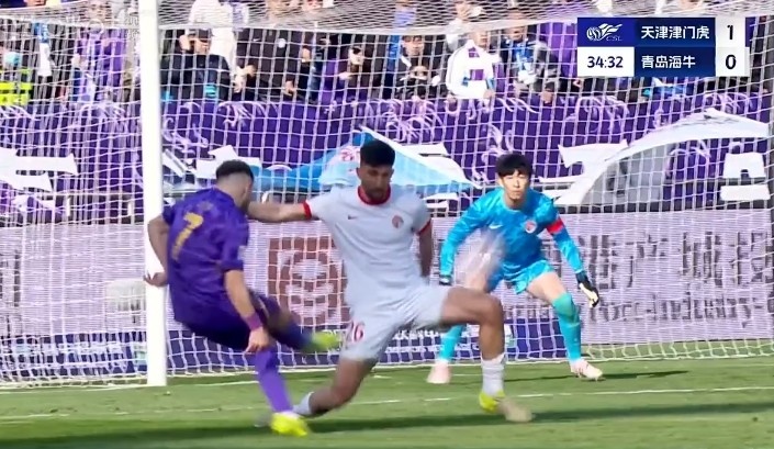 第16分鐘,基萊斯禁區里停球回做,羅斯推射左下角得手,天津津門虎1-0青島海牛。↓