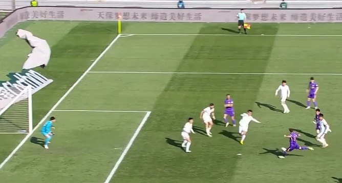 第21分鐘,孫銘謙打門被封堵,巴頓補射破門,但主裁判經VAR確認后示意進球無效。↓