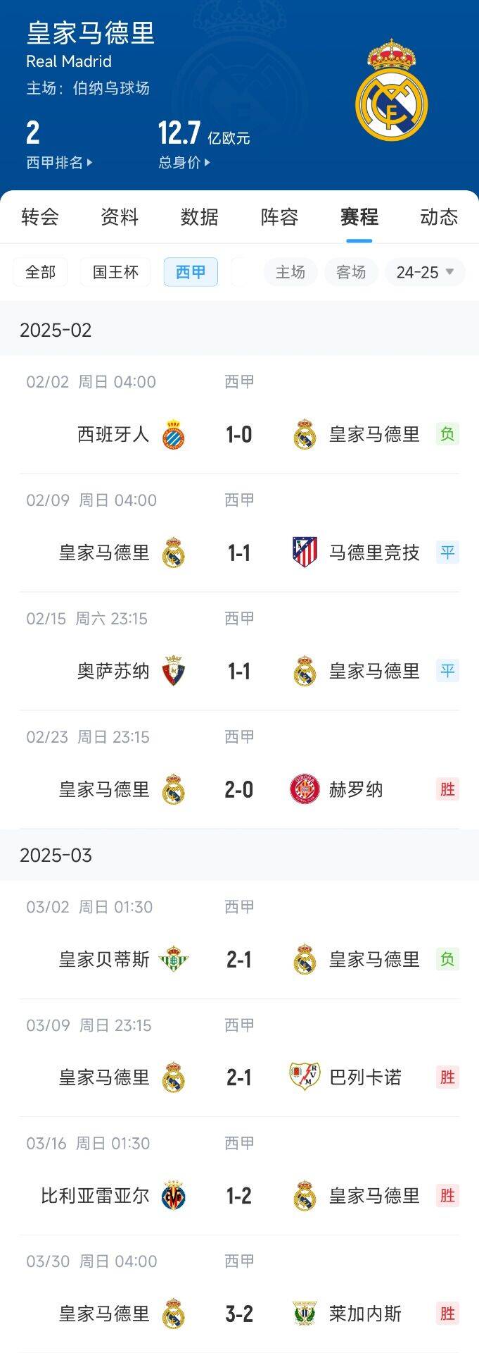 西甲三強(qiáng)狀態(tài)一覽:巴薩8連勝,皇馬8輪4勝近期3連勝,馬競8輪3勝