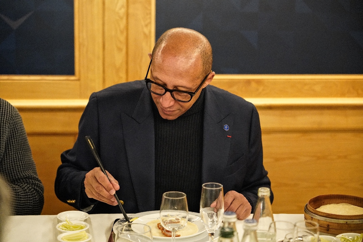 會面結束后,周云杰先生邀請迪亞洛主席一同共進午餐。一同出席午宴的重要成員還有歐塞爾市長馬勞、斯特拉斯堡主席馬克-凱勒和足協領導小組成員帕朗。本次午宴特別邀請了波爾多全聚德的主廚操刀制作烤鴨,希望各位客人可以在法國品嘗到地道的中國美食和文化。