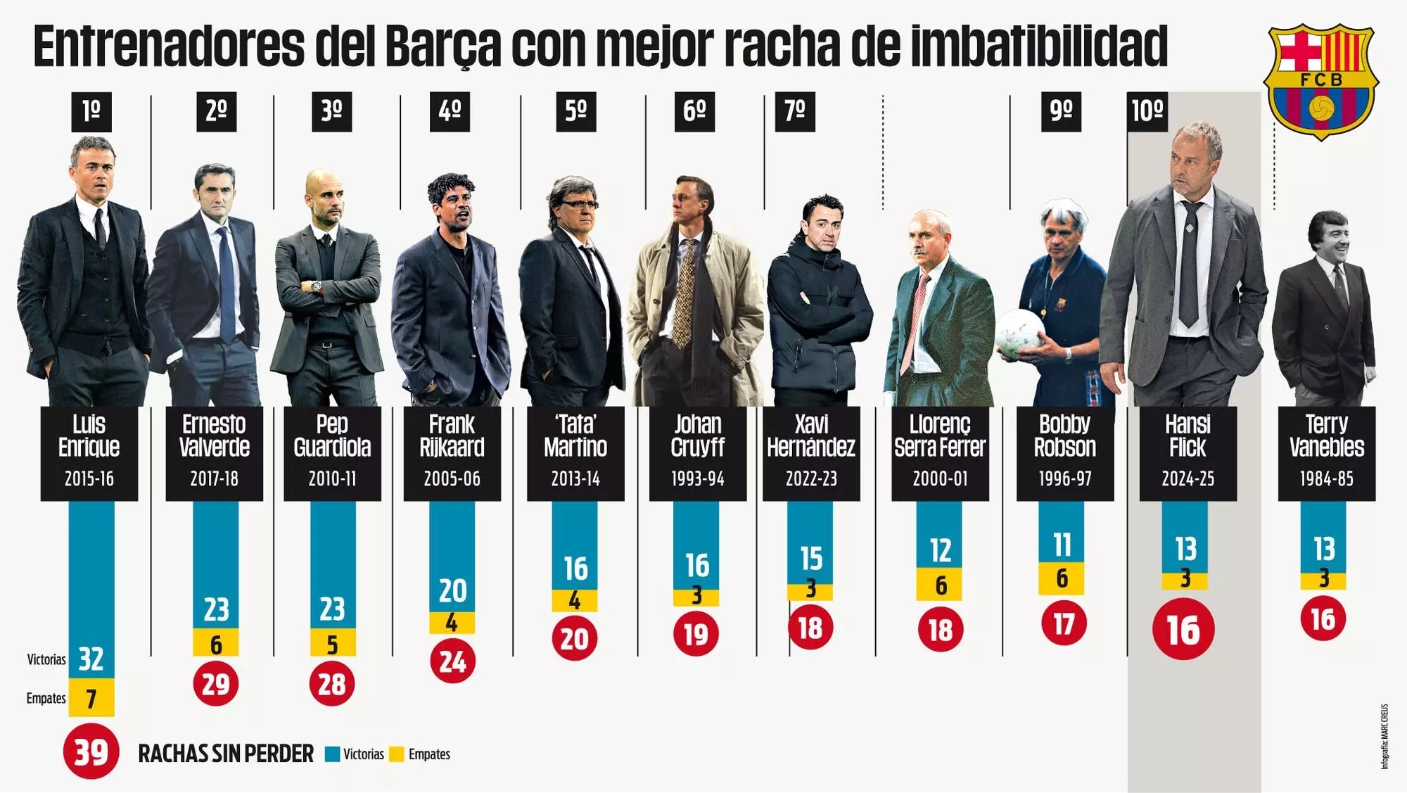 3月7日訊 根據(jù)《每日體育報》的報道,弗里克目前執(zhí)教巴薩16場取得13勝3平的不敗戰(zhàn)績,排名隊史第10位。