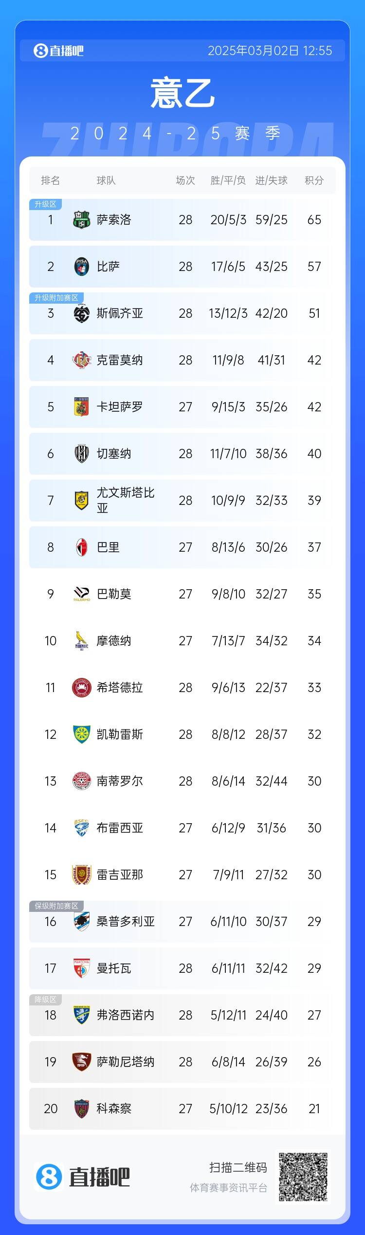 而在直通區的分數上,薩索洛已經14分領跑直通區,幾乎已經確定了一個直接升級名額。