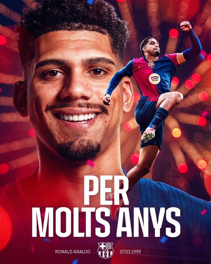 3月7日訊 今天是巴薩后衛羅納德-阿勞霍的26歲生日,俱樂部官推發文為他送上祝福。