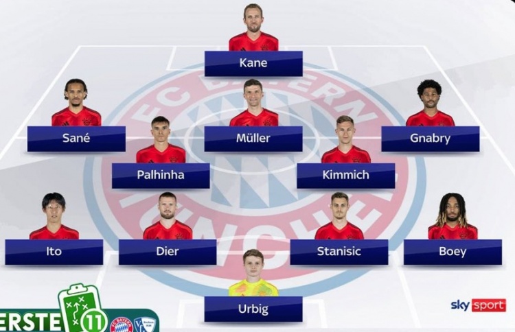 烏爾比希/伊藤洋輝、戴爾、斯坦尼西奇、博伊/帕利尼亞、基米希/薩內(nèi)、穆勒、格納布里/凱恩