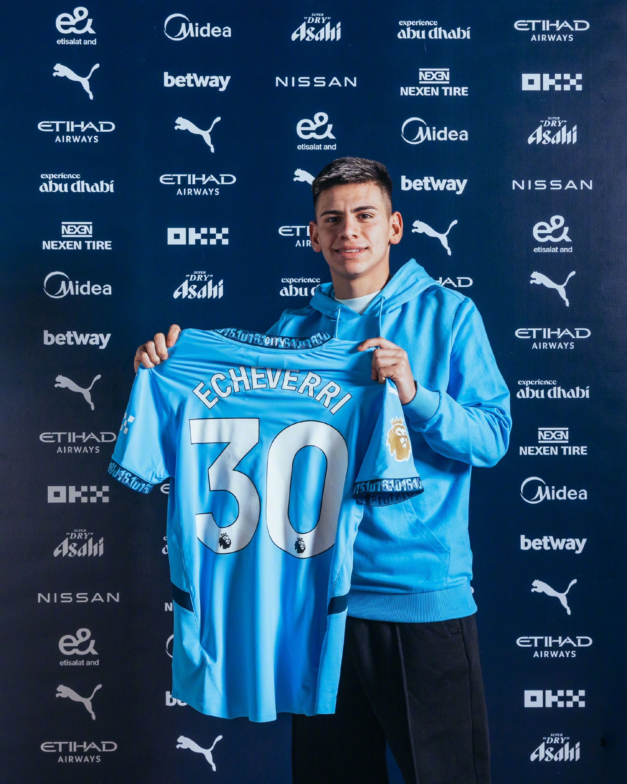 曼城在上個月宣布19歲阿根廷中場埃切維里正式加盟球隊,他將身披30號球衣。
