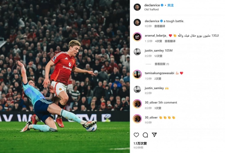 打進(jìn)扳平球!賴斯社媒曬搶斷霍伊倫瞬間照:一場艱難的戰(zhàn)斗?