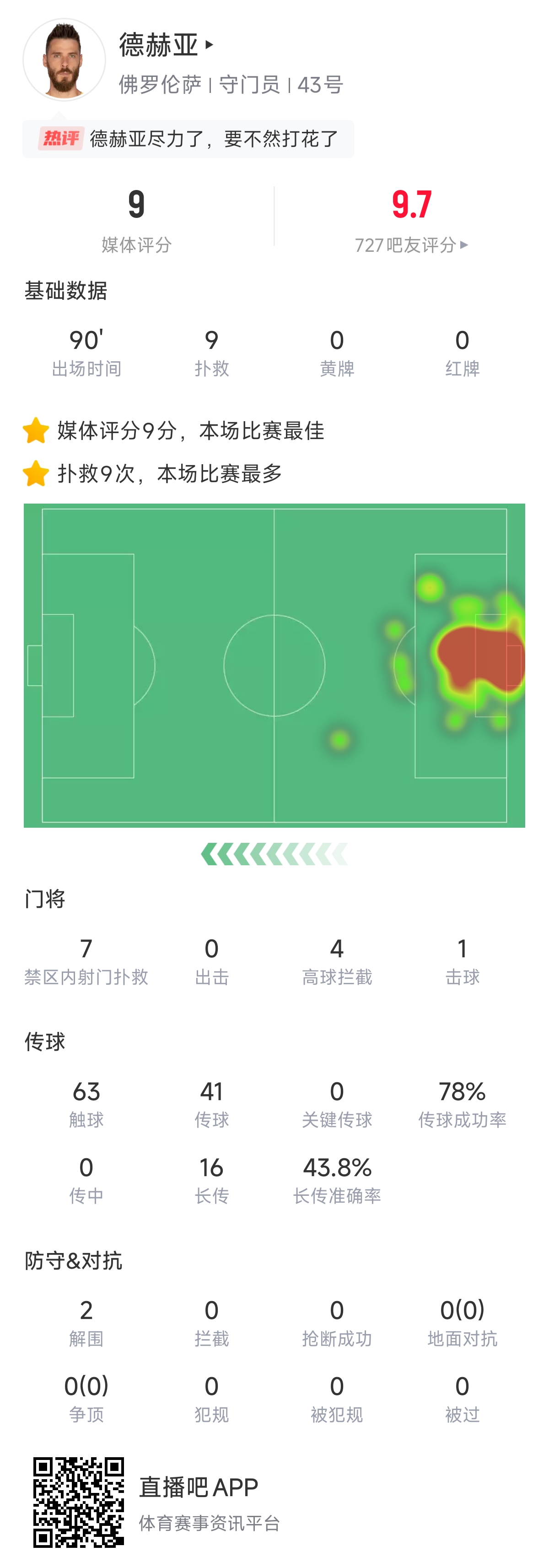 你撲你也麻!德赫亞被轟19腳僅丟2球,貢獻9撲救4攔截2解圍1擊球?
