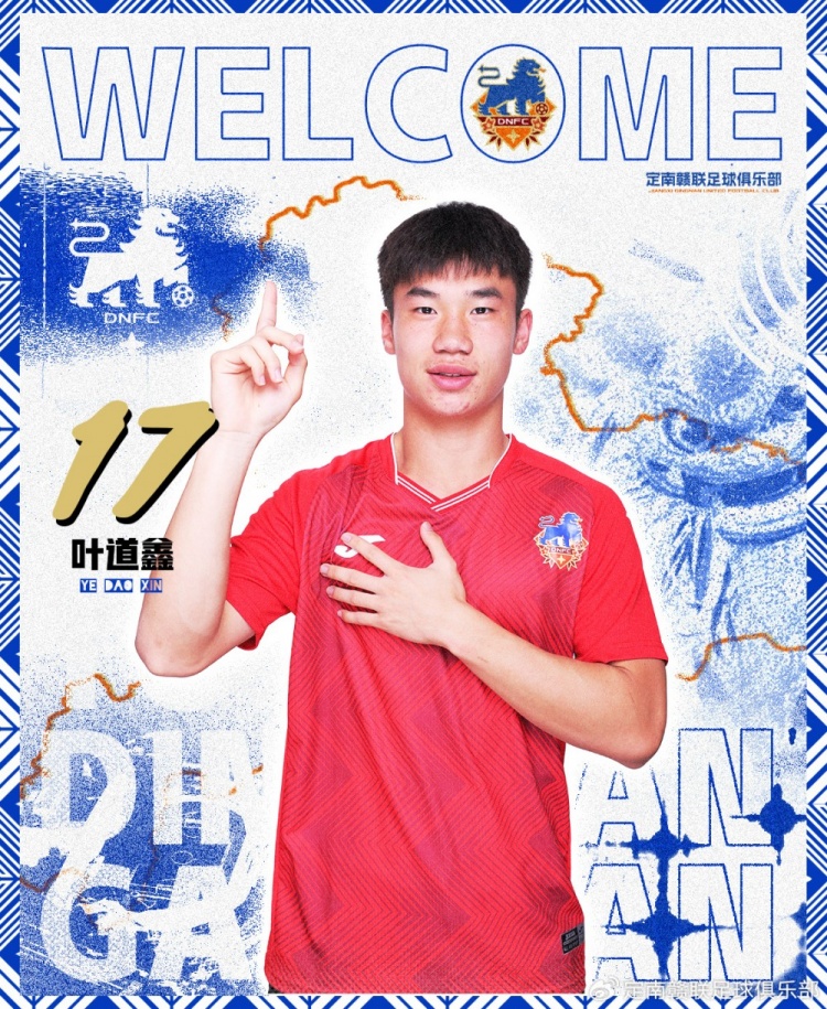 葉道鑫,2005年11月3日出生,場上司職中場。葉道鑫出自綠城足校,2022賽季隨浙江U17隊獲得第一屆中青賽U17年齡段冠軍,并入選中國金童獎候選名單。2023賽季,葉道鑫上調至浙江隊一線隊。2024賽季,葉道鑫被浙江隊租借至蘇州東吳效力。2025賽季,葉道鑫租借加盟定南贛聯,將身披17號球衣為定南贛聯效力。