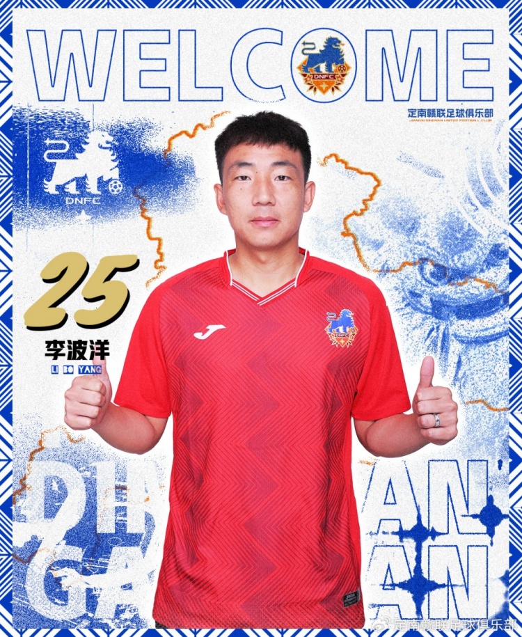 李波洋,1993年1月24日出生,職業生涯開始于陜西全運隊,曾效力于內蒙古中優、天津京鐵火車頭、黑龍江冰城。其中,代表黑龍江冰城征戰職業聯賽8個賽季,隨內蒙古中優、黑龍江冰城兩支球隊成功沖甲。2025賽季,李波洋將身穿25號球衣為定南贛聯效力。