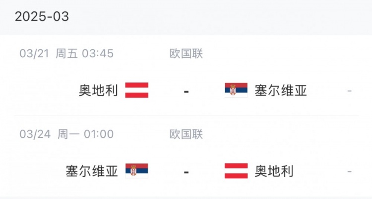 2025年03月24日 歐國聯A聯賽升級賽 塞爾維亞vs奧地利 全場錄像