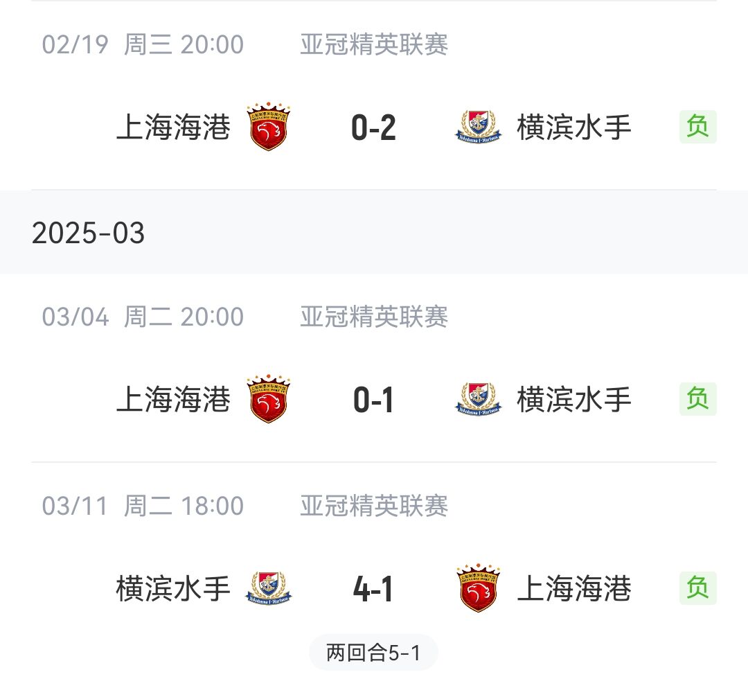 03月11日訊 亞冠精英聯(lián)賽1/8決賽東亞區(qū),上海海港兩回合1-5不敵橫濱水手,止步亞冠16強(qiáng)。
