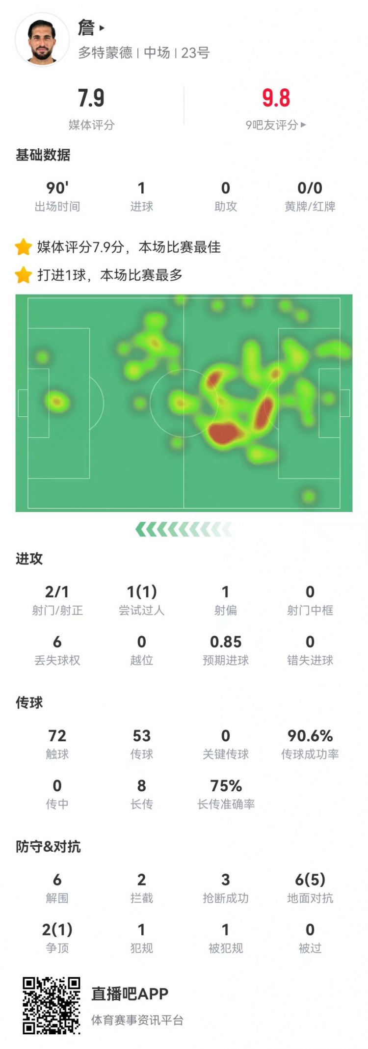 官方:埃姆雷-詹當選全場最佳,點射扳平+6解圍2攔截3搶斷?