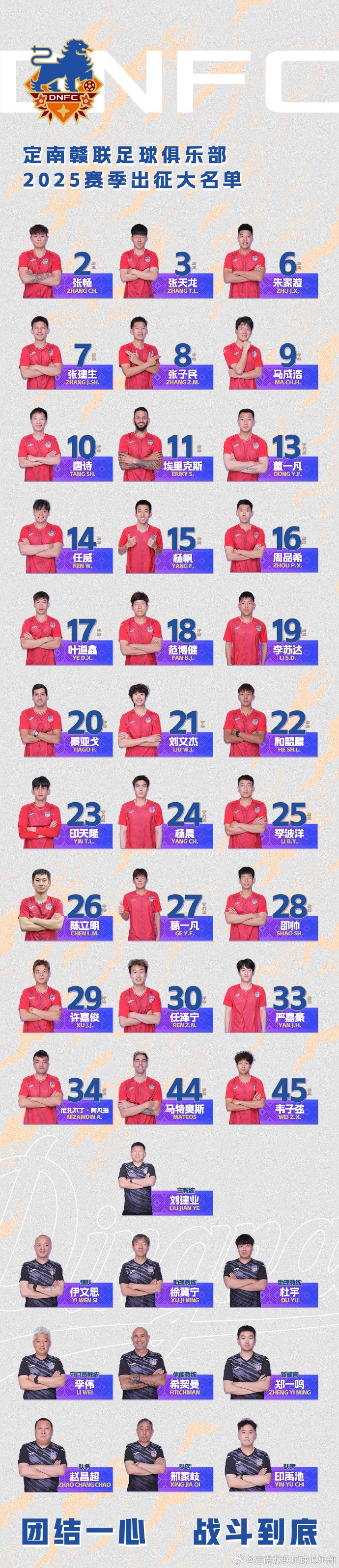 3月13日訊 定南贛聯(lián)俱樂部公布了新賽季一線隊名單,球隊由劉建業(yè)掛帥,共30名球員入選,其中唐詩身披10號。