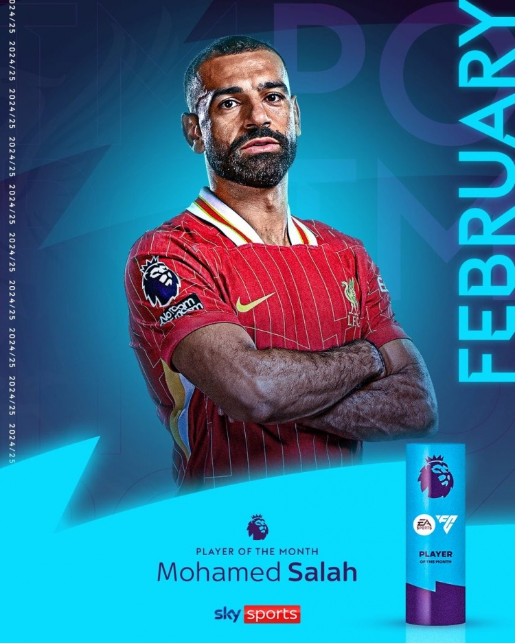 6場6球4助攻!官方:利物浦邊鋒薩拉赫當選英超聯(lián)賽2月最佳球員?